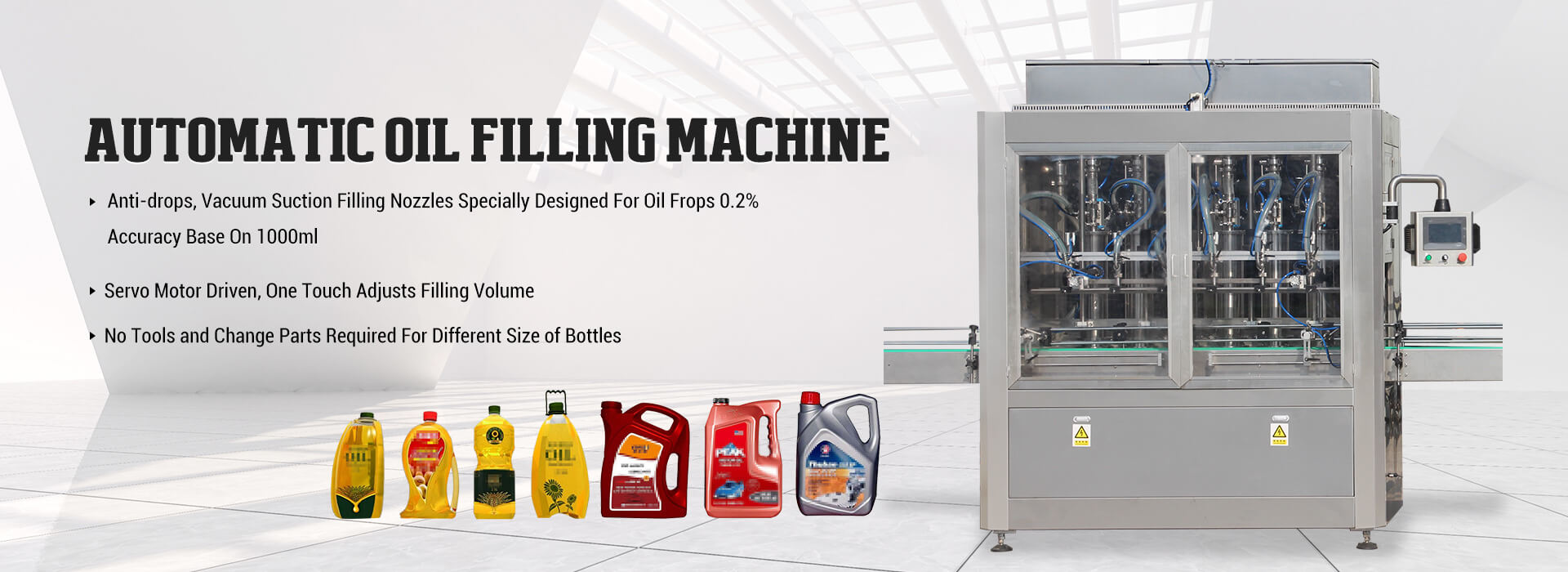 අපගේ ප්රධාන නිෂ්පාදන අතර සම්පූර්ණ පිරවුම් ඇසුරුම් මාර්ගය සඳහා ස්වයංක්රීය පිරවුම් යන්ත්රය, ආවරණ යන්ත්රය, ලේබල් කිරීමේ යන්ත්රය යනාදිය ඇතුළත් වේ. අපගේ නිෂ්පාදන ce ෂධ, ආහාර, දෛනික රසායනික ද්රව්ය, රූපලාවණ්ය කර්මාන්ත ආදියෙහි බහුලව භාවිතා වේ.